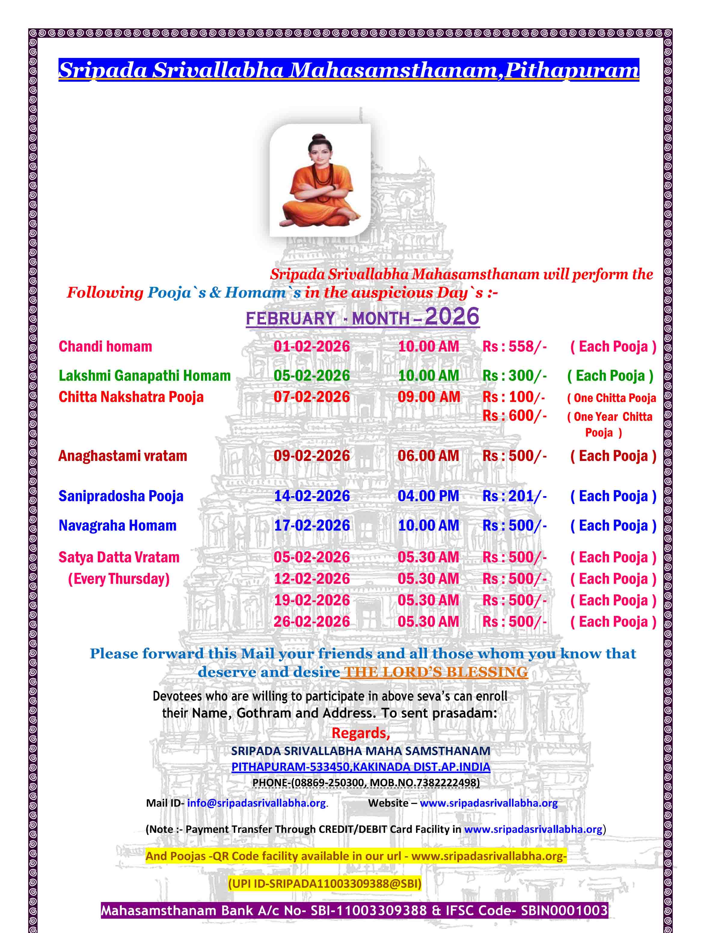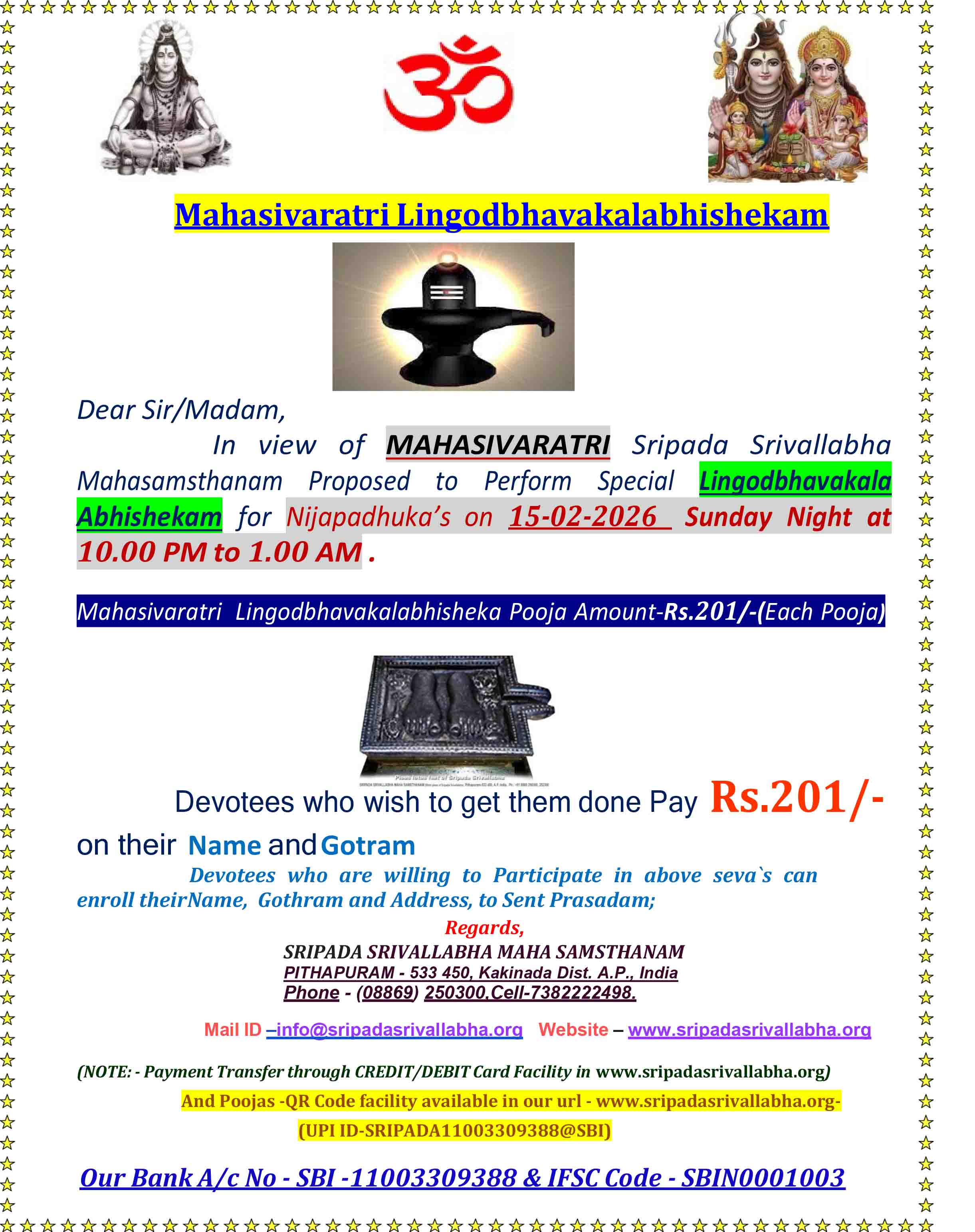 *If Any One Transfer Money Please Provide Scanned Copies Of Proof To info@sripadasrivallabha.org .*